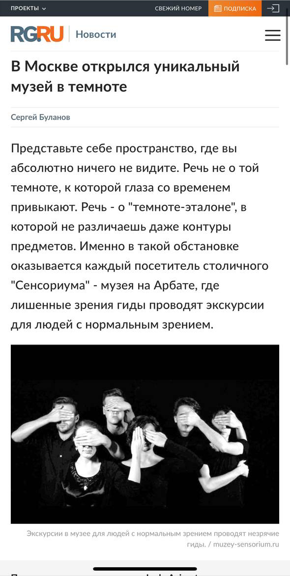 Привет! Добро пожаловать в музей темноты Сенсориум.