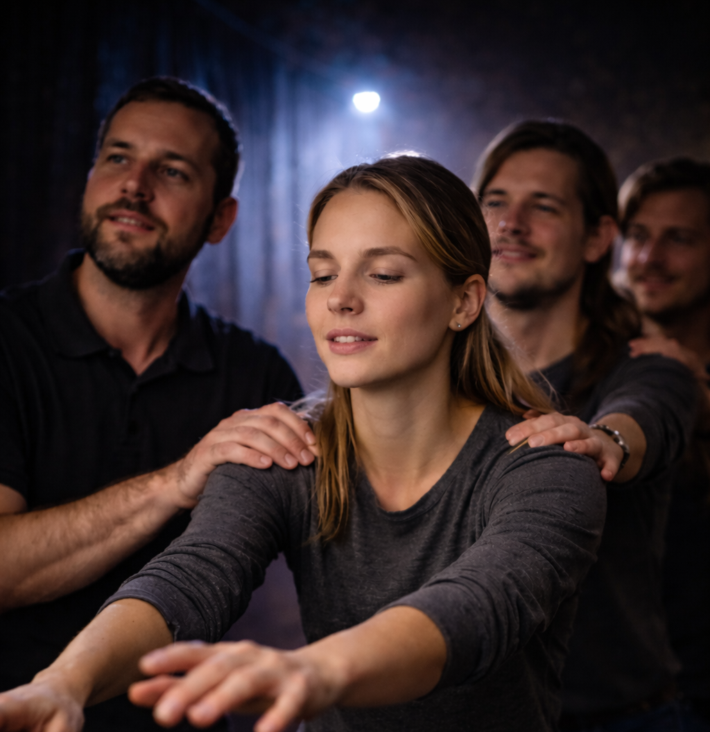 Да, часть программы может включать элементы «свидания в темноте», адаптированные для корпоративного формата — это вызывает улыбки и создаёт праздничное настроение.