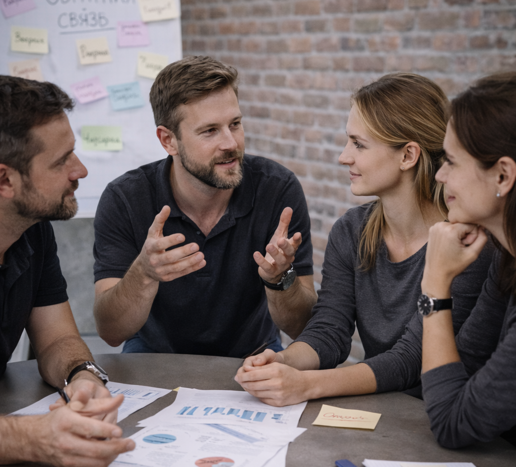 – Командные тренинги на коммуникацию и доверие.